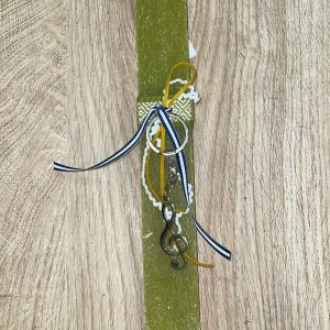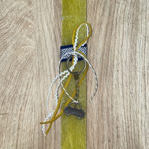 Λαχανί πλακέ λαμπάδα με μεταλλικό μπρελόκ κλειδί του Σολ