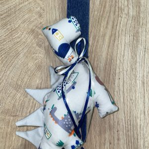 Μπλε πλακέ λαμπάδα με υφασμάτινο δεινοσαυράκι