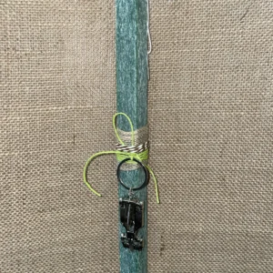 Πράσινη τετράγωνη αρωματική λαμπάδα με μεταλλικό μπρελόκ κλειδί του Σολ
