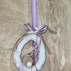Μωβ ιριζέ λαμπάδα με διακοσμητικό αυγό