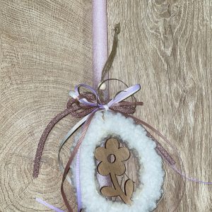 Ροζ ιριζέ λαμπάδα με διακοσμητικό αυγό