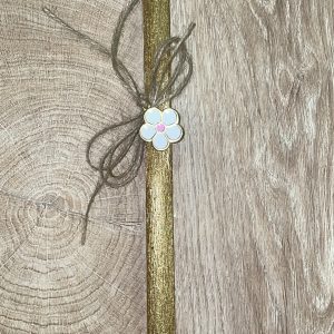Στρογγυλή χρυσή λαμπάδα με μεταλλικό λευκό λουλούδι
