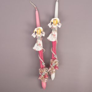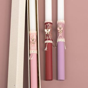 Λευκή και ροζ στρογγυλή λαμπάδα με μεταλλική πεταλούδα