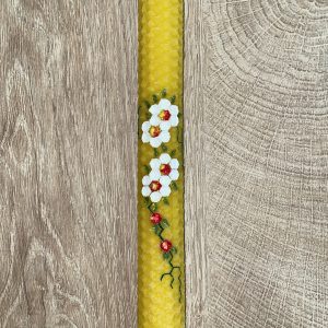 Λαμπάδα κίτρινη από κηρήθρα με λουλούδια
