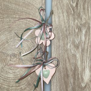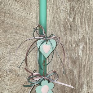 Μέντα στρογγυλή λαμπάδα με μεταλλικό λουλούδι και καρδιά