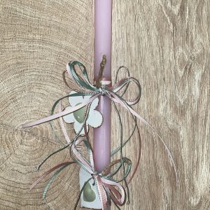 Ροζ στρογγυλή λαμπάδα με μεταλλικό λουλούδι και καρδιά