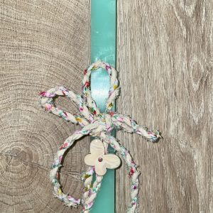 Μέντα τετράγωνη λαμπάδα με πολύχρωμο κορδόνι και πεταλουδίτσα