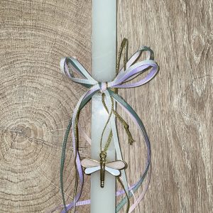 Λευκή τετράγωνη λαμπάδα με κρεμαστή λιβελούλα για τον λαιμό