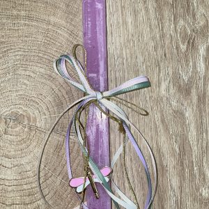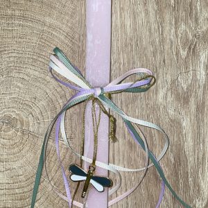 Φούξια τετράγωνη λαμπάδα με κρεμαστή λιβελούλα για τον λαιμό