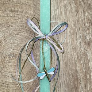 Μέντα τετράγωνη λαμπάδα με κρεμαστή λιβελούλα για τον λαιμό