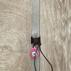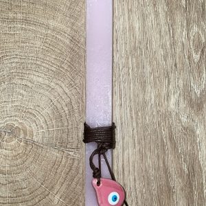 Ροζ τετράγωνη λαμπάδα με κρεμαστό ματάκι για τον λαιμό