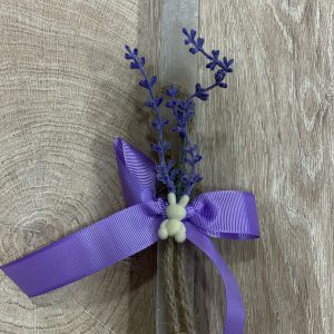 Μπεζ τετράγωνη λαμπάδα με λεβάντα και μικρό κουνελάκι