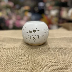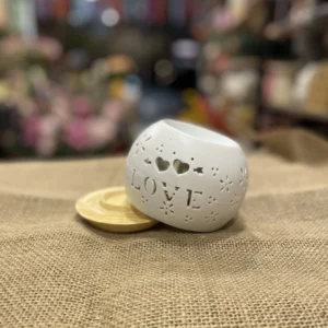 Αρωματιστής λευκός στρογγυλός ”Love” με κεραμική βάση σαν ξύλο