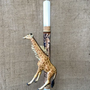 Λευκή στρογγυλή λαμπάδα με παιχνίδι καμηλοπάρδαλη