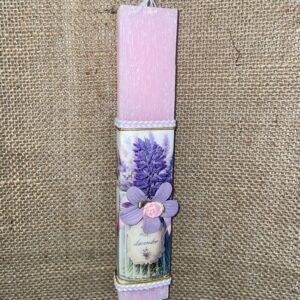 Ροζ πλακέ αρωματική λαμπάδα με λεβάντα