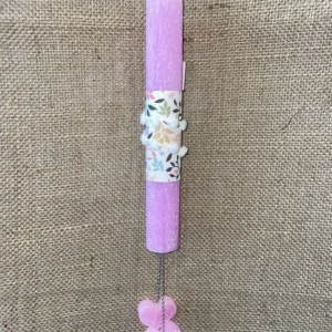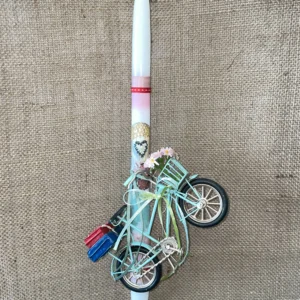 Λευκή στρογγυλή λαμπάδα με ποδήλατο με λουλούδια