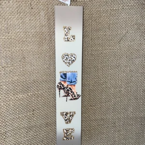 Μπεζ/καφέ πλακέ λαμπάδα με λεοπάρ θέμα Love – Fashion και λεοπάρ γόβες