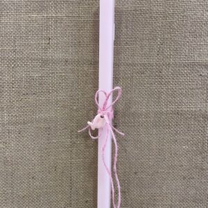 Λευκή τετράγωνη αρωματική λαμπάδα με διακοσμητικό κεραμικό ροζ ματάκι