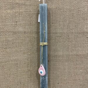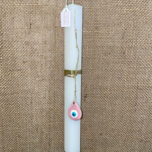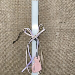Λευκή τετράγωνη λαμπάδα με κολιέ γατούλα κεραμική ροζ