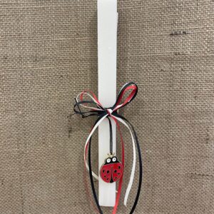 Λευκή τετράγωνη λαμπάδα με διακοσμητική μεταλλική πασχαλίτσα