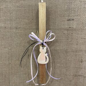 Χρυσή τετράγωνη λαμπάδα με κολιέ γατούλα κεραμική μπεζ