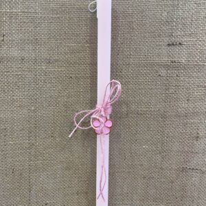 Ροζ τετράγωνη λαμπάδα με κρεμαστή μεταλλική μαργαρίτα ροζ