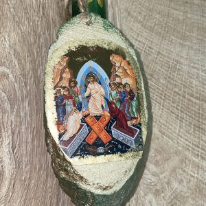Λευκή στρογγυλή λαμπάδα με κορμό και εικόνα της Ανάστασης