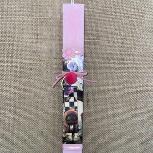 Ροζ πλακέ αρωματική λαμπάδα με Αλίκη στην χώρα των Θαυμάτων