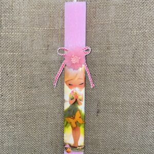 Ροζ πλακέ αρωματική λαμπάδα με Tinkerbell