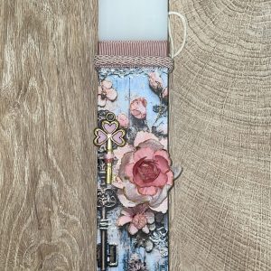 Λευκή πλακέ λαμπάδα με κλειδί και λουλούδι
