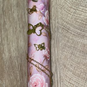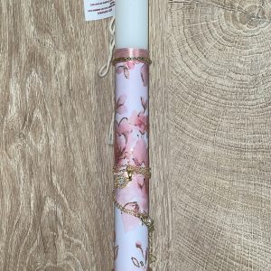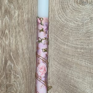 Λευκή στρογγυλή λαμπάδα με κολιέ και σκουλαρίκια πεταλούδα