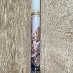 Λευκή στρογγυλή λαμπάδα με φύλλα