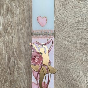 Λευκή πλακέ λαμπάδα με μεταλλική μπαλαρίνα