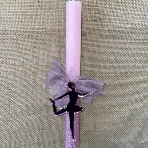 Ροζ στρογγυλή αρωματική λαμπάδα, μισή ιριζέ, με plexiglass καθρέφτη μπαλαρίνα