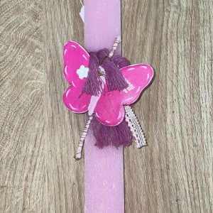 Ροζ πλακέ λαμπάδα με φούξια κεραμική πεταλούδα