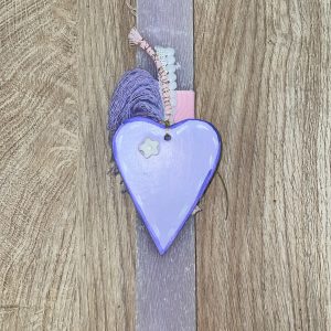 Μωβ πλακέ λαμπάδα με μωβ κεραμική καρδιά