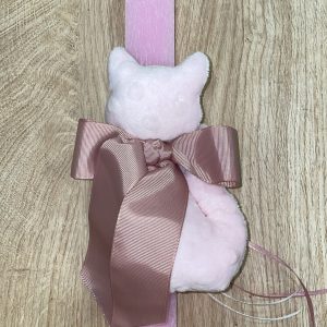Ροζ πλακέ λαμπάδα με υφασμάτινο γατάκι