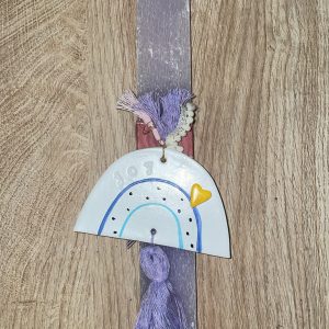 Μωβ πλακέ λαμπάδα με κεραμικό ουράνιο τόξο