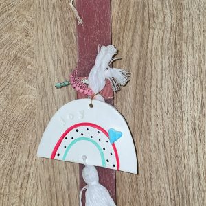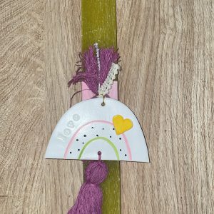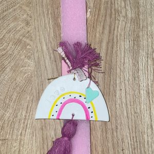 Ροζ πλακέ λαμπάδα με κεραμικό ουράνιο τόξο