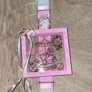 Λευκή πλακέ λαμπάδα με καρουζέλ ροζ