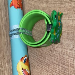 Λευκή στρογγυλή λαμπάδα με μαγνητικό βραχιολάκι με πράσινο δεινοσαυράκι