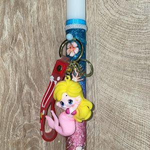Λευκή στρογγυλή λαμπάδα με ροζ γοργόνα με ξανθά μαλλιά