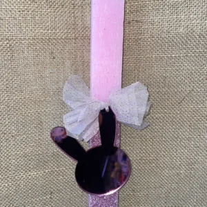 Ροζ πλακέ αρωματική λαμπάδα, μισή ιριζέ, με plexiglass καθρέφτη Mickey