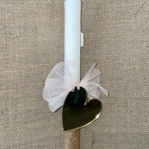 Μπεζ στρογγυλή αρωματική λαμπάδα, μισή ιριζέ, με plexiglass καθρέφτη καρδιά