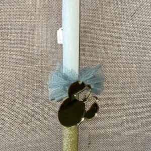 Μπεζ στρογγυλή αρωματική λαμπάδα, μισή ιριζέ, με plexiglass καθρέφτη Minnie