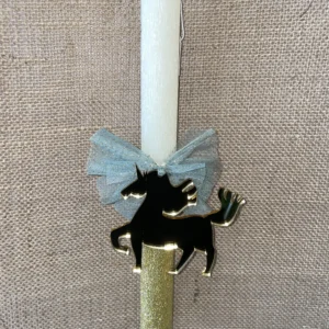 Μπεζ πλακέ αρωματική λαμπάδα, μισή ιριζέ, με plexiglass καθρέφτη μπαλαρίνα