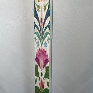 Πλακέ λευκή λαμπάδα με λουλούδι φούξια με μέντα και πράσινο
