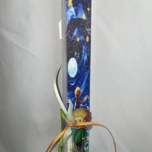 Πλακέ λευκή λαμπάδα με Μικρό Πρίγκηπα σε μινιατούρα plexiglass