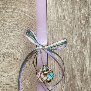 Ροζ τετράγωνη λαμπάδα με μεταλλικό στρογγυλό κρεμαστό για τον λαιμό