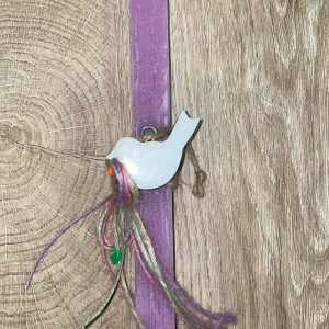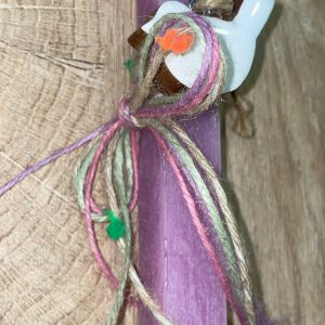 Τετράγωνη φούξια λαμπάδα με ξύλινο λευκό πουλάκι
